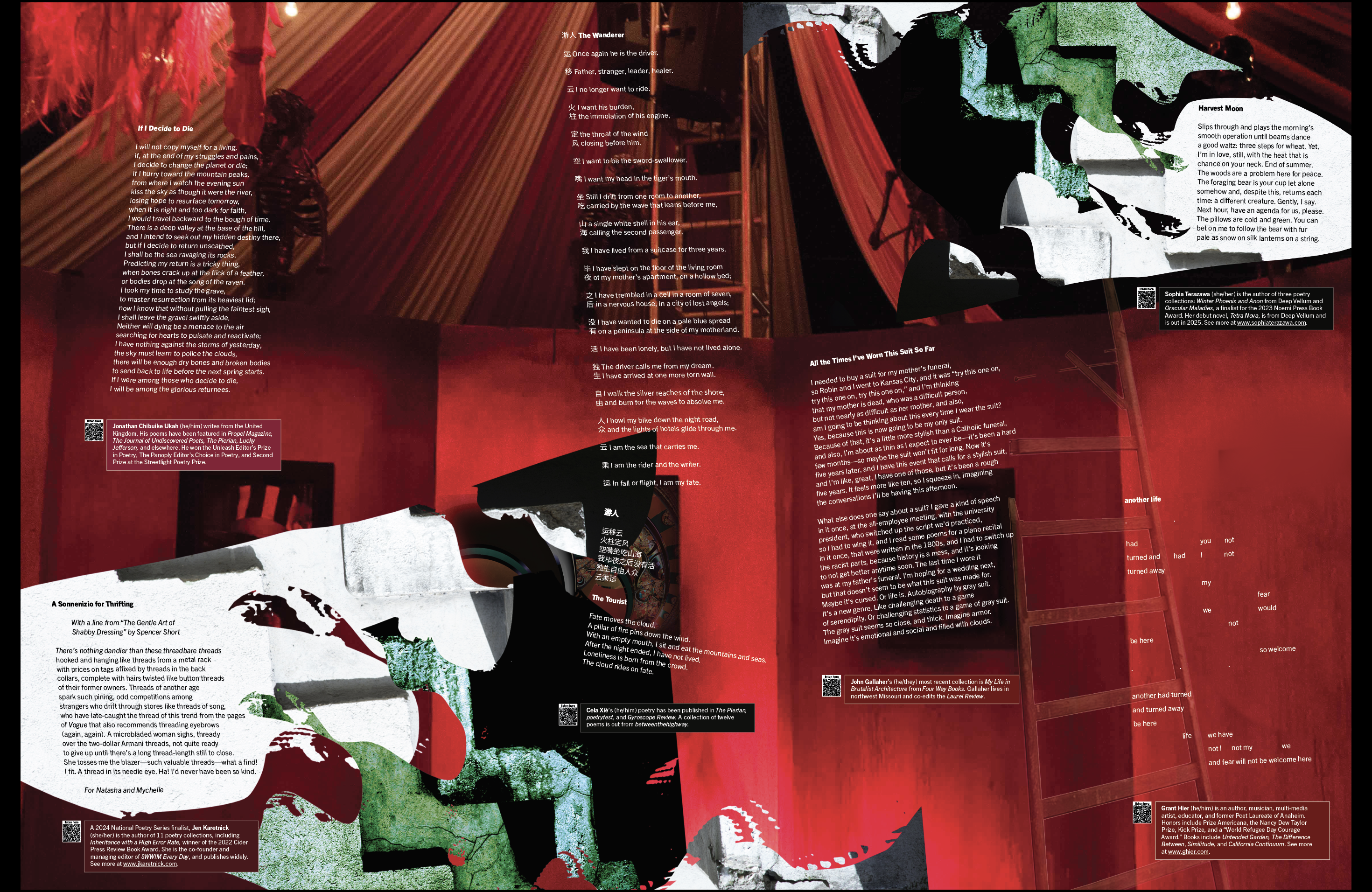 We usually do not share the entirety of the print issue online because it is designed specifically for the print medium and in a new format each year. In part, because covid restrictions in Southern California have slowed our efforts to mail the print issue, we are making an exception. Below is the full pdf of the print issue itself, in addition to all the poems in audio format, which we had planned for increased accessibility. Keep in mind that we used large-format newsprint this year; the reading experience is quite different on a screen, as the relationships across poems and between text and image is altered.